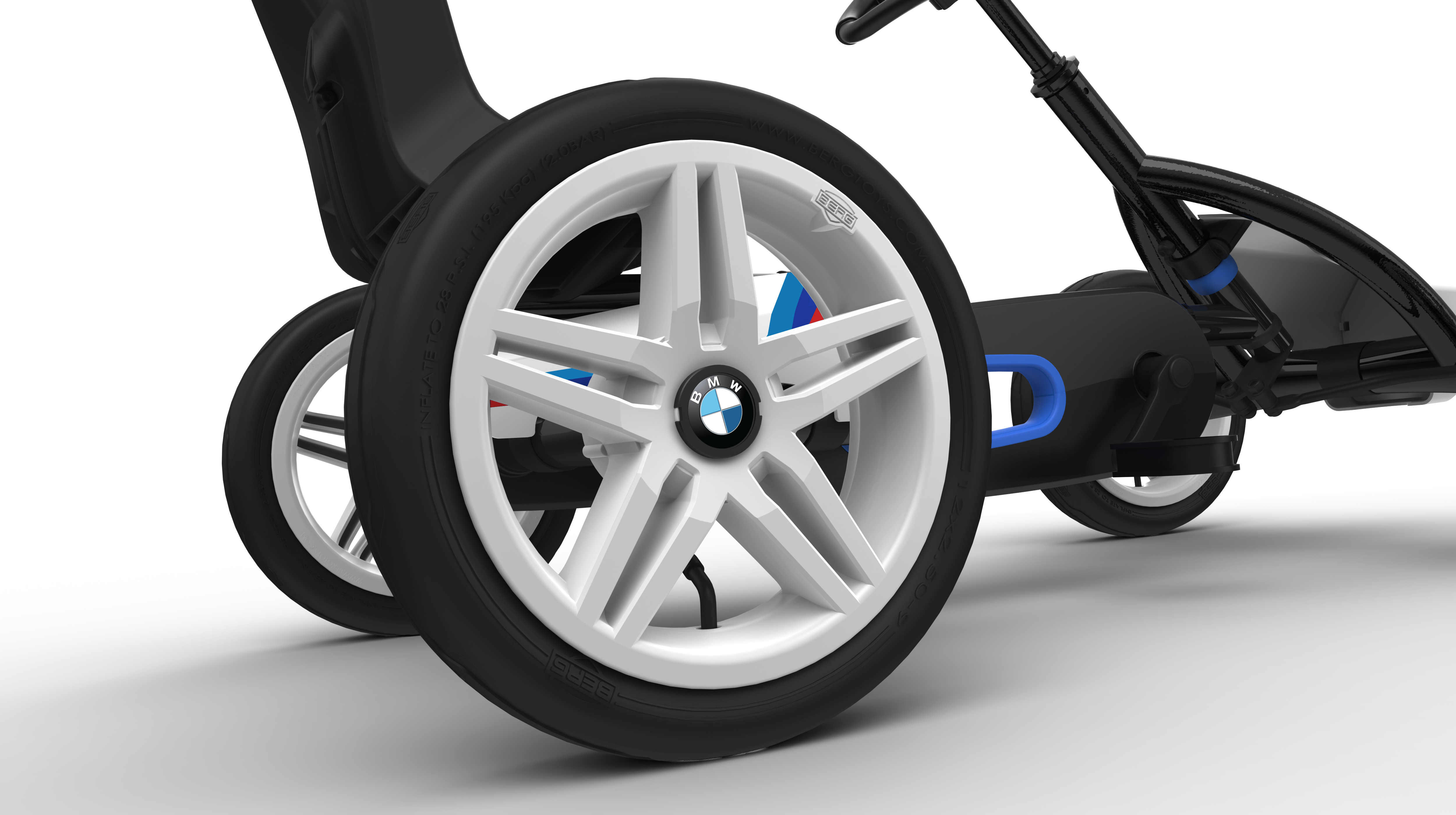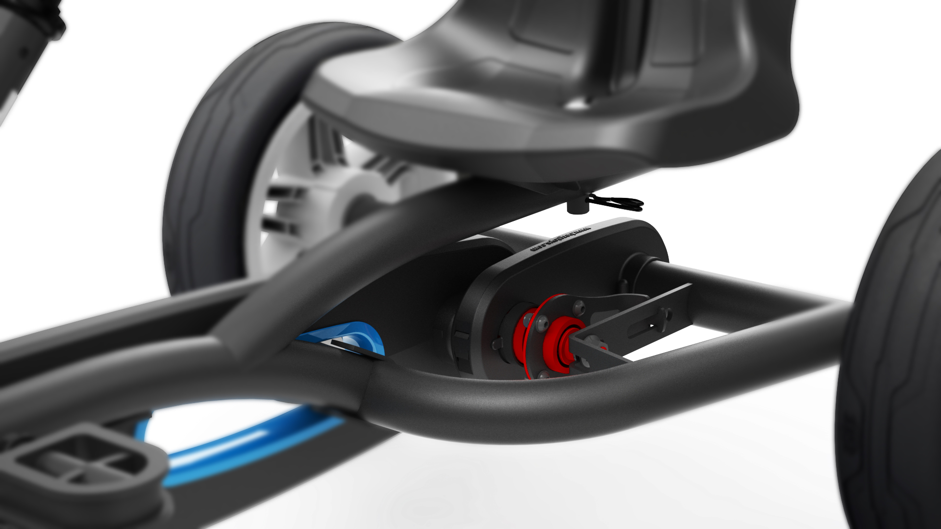 På grund af swing akslen har denne go-kart perfekt vejgreb og holder dine fødder på pedalerne – også under selve turen, takket være friløb.