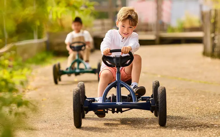 Hos BERG ønsker vi at inspirere børn til at lege udendørs. Med en BERG go-kart er du garanteret mange års sjov og kan køre sikkert afsted. Hos BERG har vi et stort udvalg af go-karts til både unge og ældre, små og store. Fra en gåbil med pedaler (fra 10 måneder) til elektriske go-karts (fra 6 år). BERG go-karts fås i forskellige farver til både drenge og piger. Vi har den perfekte go-kart til dig!