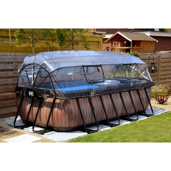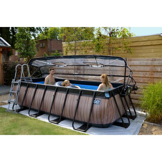 Med EXIT poolskærmen til swimmingpooler er du ikke længere afhængig af vejret. Poolskærmen sikrer, at der ikke kommer snavs i vandet og er en bæredygtig løsning til opvarmning af vandet, da varmen fra solen er fanget under poolskærmen. Poolskærmen er gennemsigtig og meget let at åbne takket være de integrerede gastrykfjedre. Poolskærmen har også fire sammenklappelige vinduer. Kort sagt: nyd din pool uanset vejret.