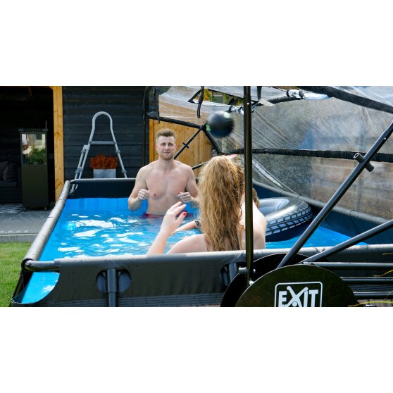 Den fritstående pool er ikke blot unik, den er også stærk og robust. Poolens sorte stålstel er ekstra tykt og har en diameter på 50mm. Stelbenene sikrer optimal stabilitet, så poolen altid forbliver stabil. Bæredygtigheden var også med under udviklingen, og derfor er det sorte stel galvaniseret og pulverlakeret mod rust. Her hos EXIT Toys kalder vi det “Duplex Coating System”. Tid til en forfriskende dukkert i din egen EXIT pool i haven!